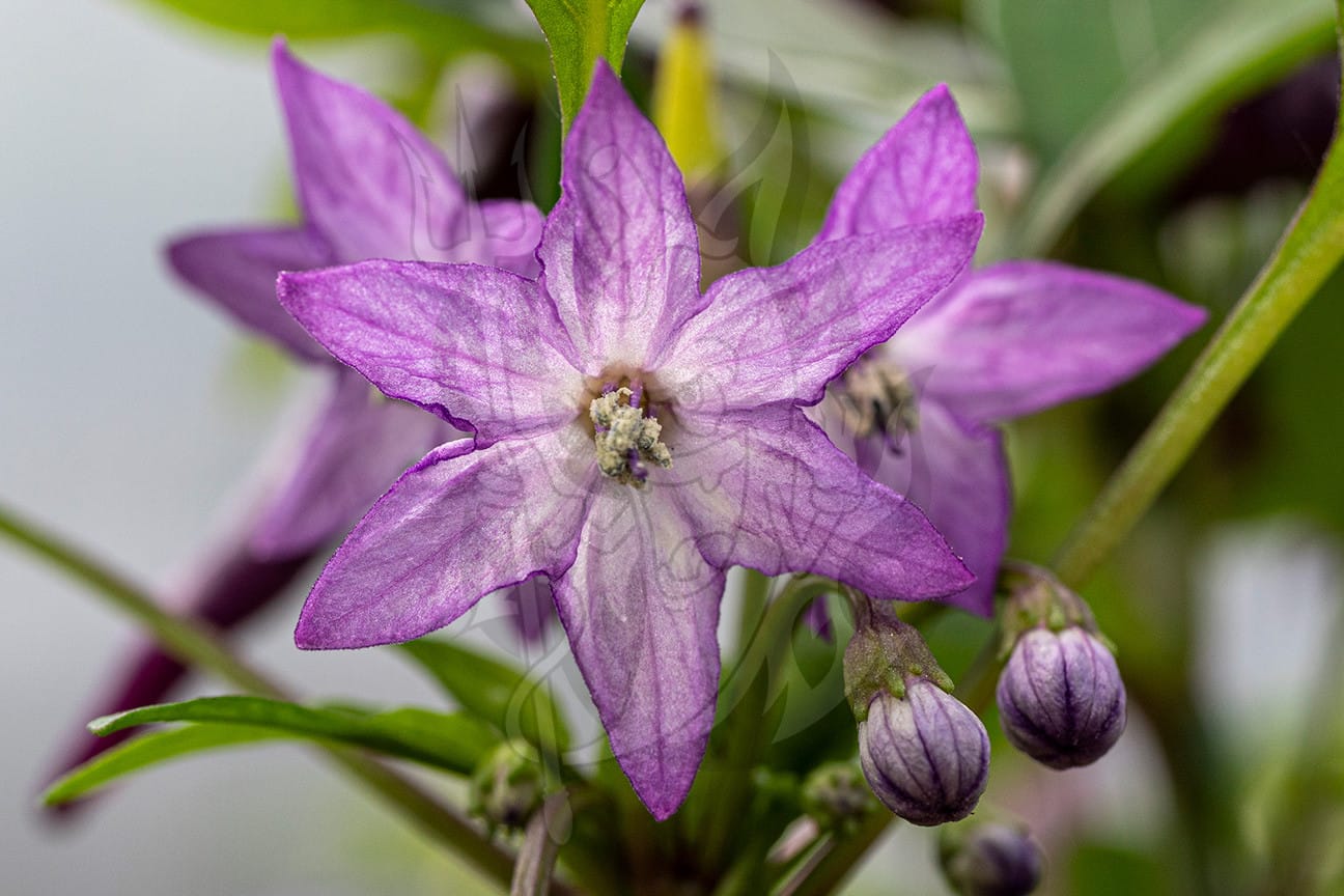 Растение невысокое, полураскидистое, высота 20 – 30 см, но некоторые экземпляры могут достигать в высоту 45 см при условии выращивания в теплице. Плоды удлинённо-конусовидной формы с заострённой вершиной, изогнутые, прямостоячие, гладкие, растут пучками. В технической стадии спелости окрашены в тёмно-фиолетовый цвет. По мере созревания цвет меняется на светло-оранжевый, затем переходит в оранжевый цвет. Созревшие плоды окрашены в тёмно-красный цвет. Одновременно на растении присутствуют плоды разной степени созревания, что придаёт высокую декоративность сорту. Цветки в виде шестиконечной звезды, пурпурного цвета. Длина плода 6,0 – 8,5 см, диаметр 1,0 – 1,3 см. Вес 2 – 3 г. Толщина стенки плода до 2 мм. Имеет 2 семенные камеры.