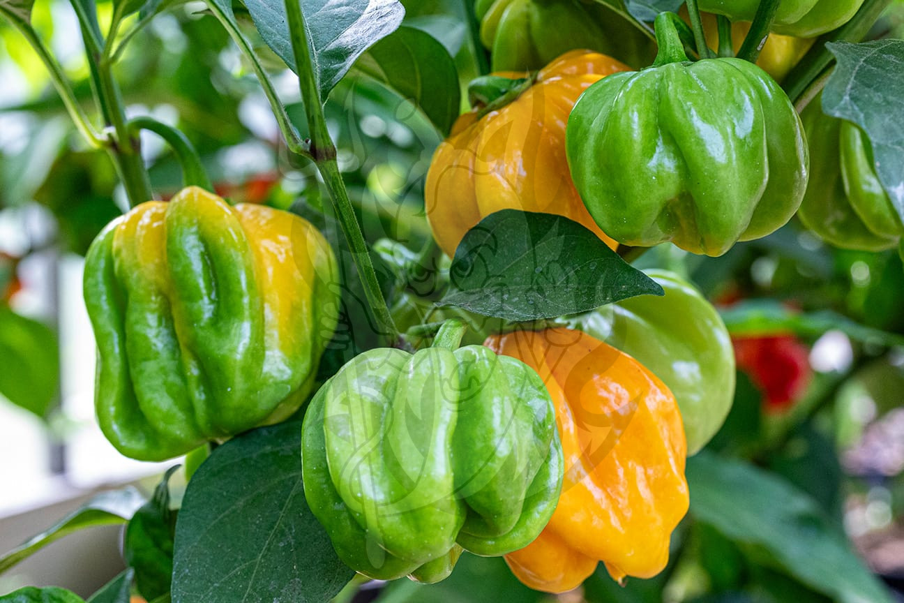 Растение среднерослое, до 70 см в высоту, раскидистое, с активным боковым ветвлением. Плоды крупные, кубовидной формы, ребристые, блестящие. В стадии технической спелости плоды окрашены в светло-зелёный цвет. При созревании становятся тёмно-жёлтыми, с уклоном в оранжевый цвет. Вес одного плода 20 – 30 г. Длина 4 – 5 см, диаметр 5 – 6 см.