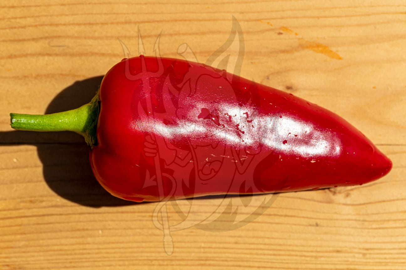 Растение невысокое, 35 – 40 см в высоту, полураскидистое. Плоды удлинённо-конусовидной формы, гладкие, блестящие, с заострённой вершиной. В стадии технической спелости зелёного цвета. В биологической спелости цвет тёмно-красный. Масса одного плода 75 – 90 г. Толщина стенки плода 5 – 6 мм. Длина 10 – 12 см, диаметр 5 – 5,5 см. Количество семенных камер 3 – 4.